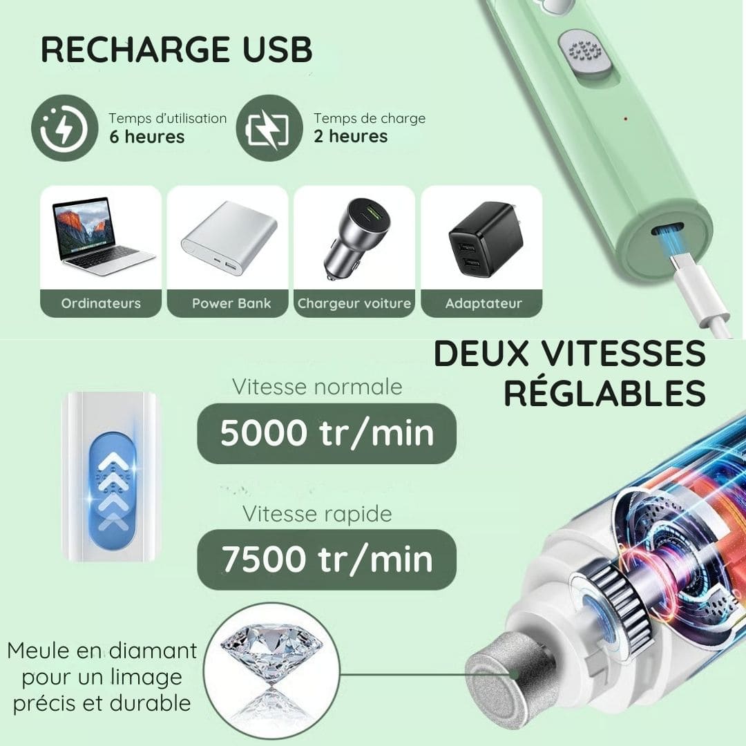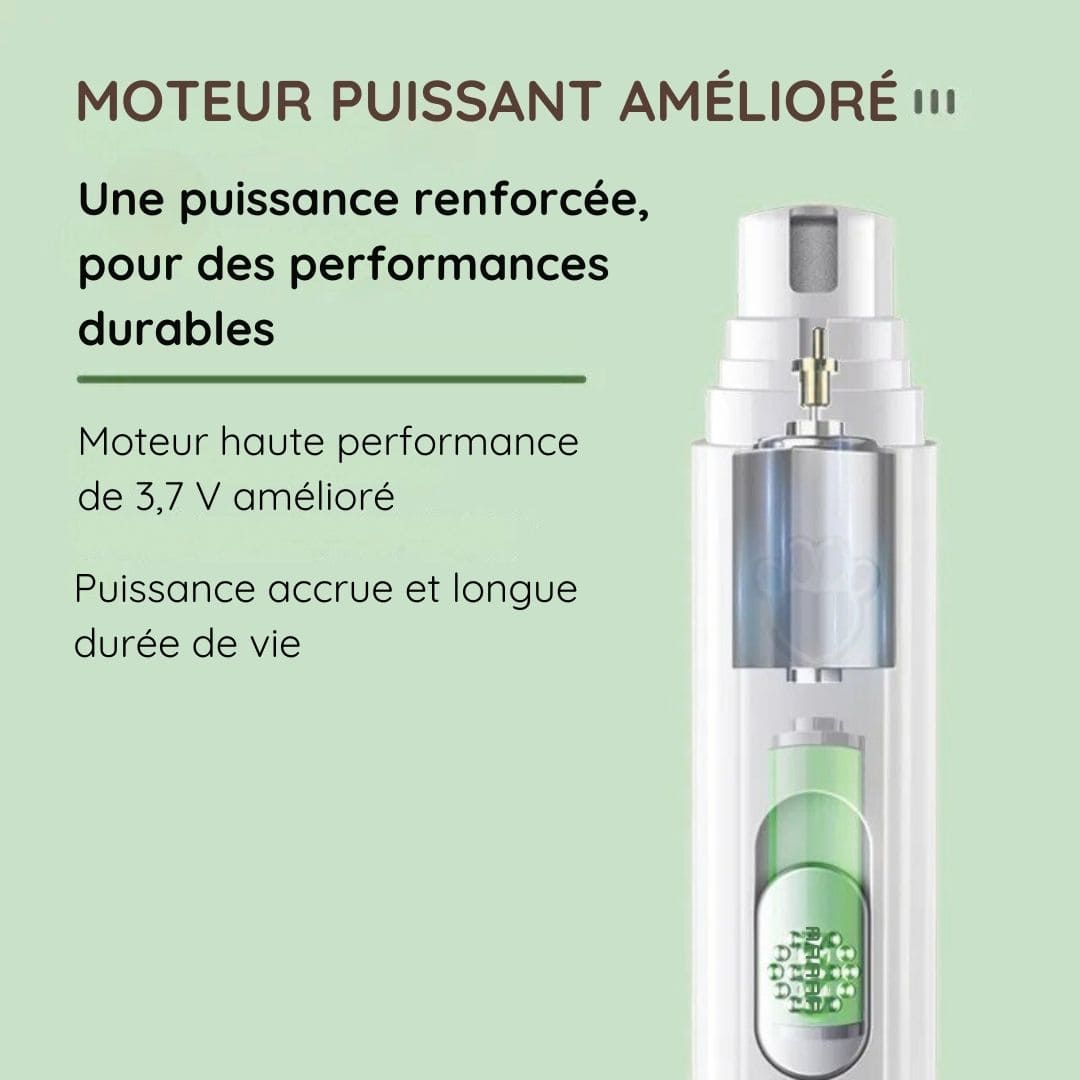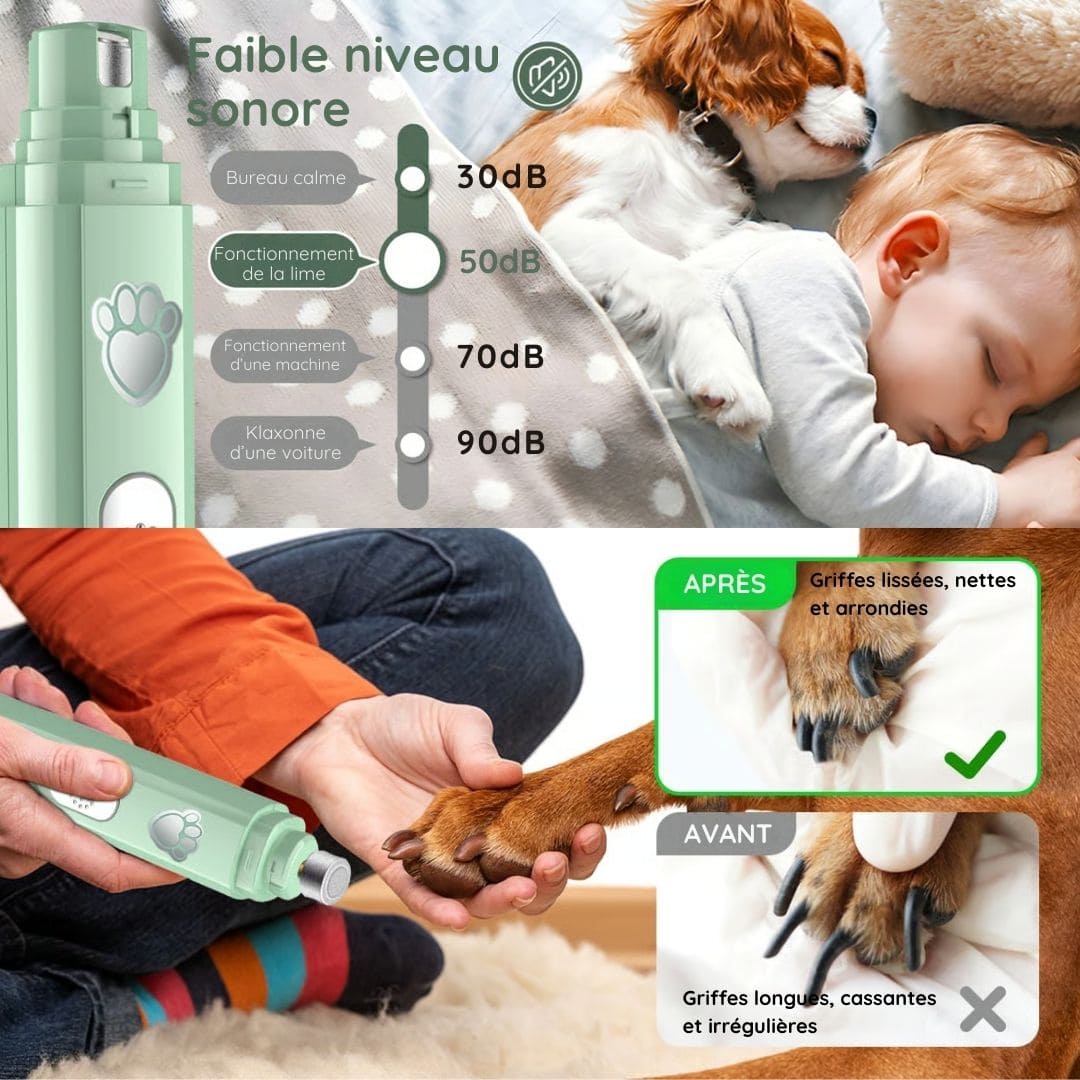 Grâce à sa lumière LED intégrée, sa ponceuse rotative douce et son fonctionnement silencieux, cette lime électrique transforme la corvée en un moment simple, rapide et rassurant pour vous comme pour lui.