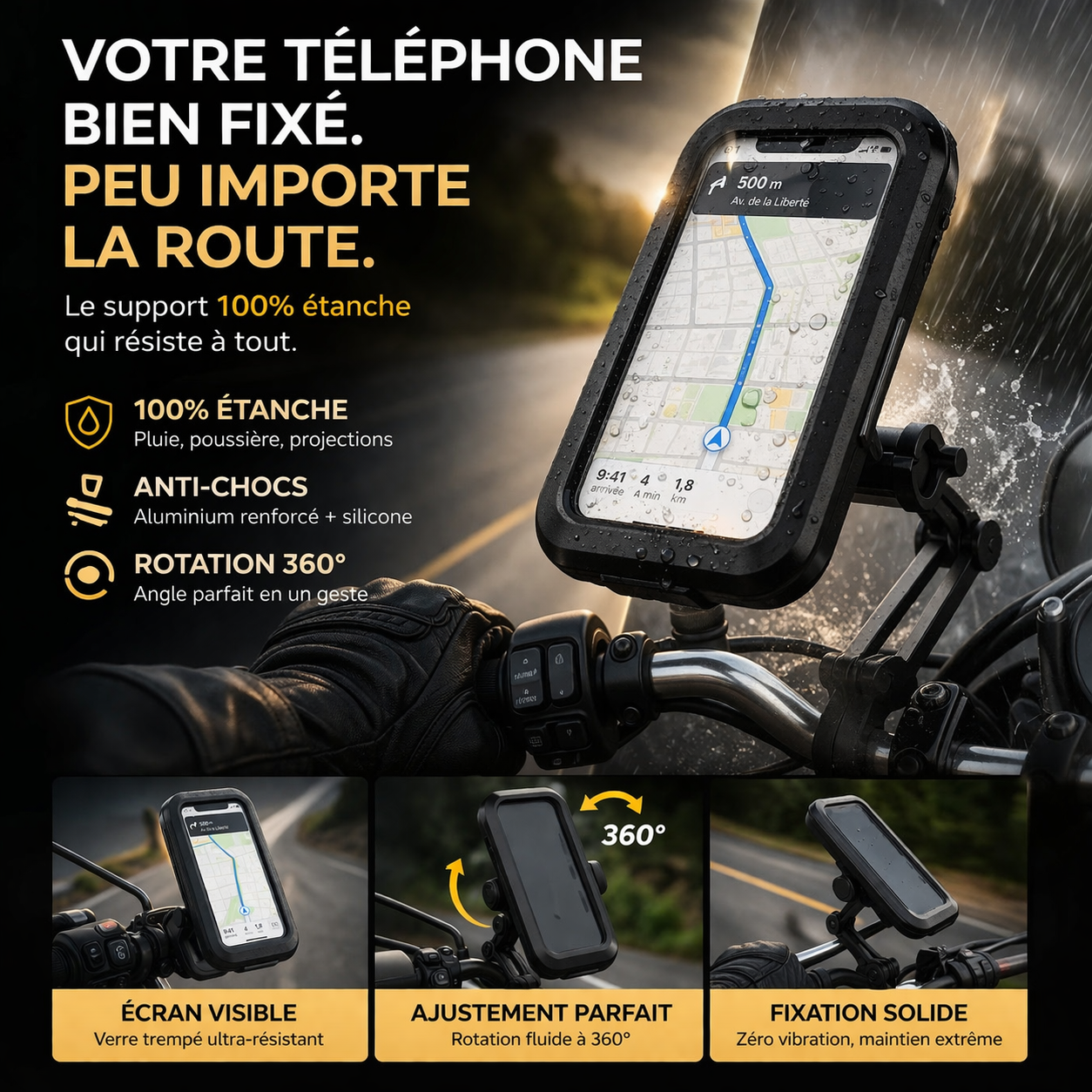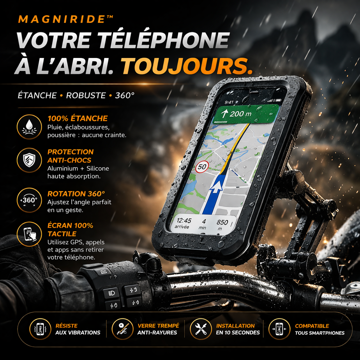 ✨ MagniRide – Support Téléphone Étanche 360°