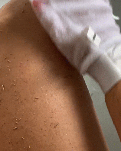 Le gant exfoliant permet de réaliser un gommage efficace qui élimine les cellules mortes et stimule la circulation sanguine.