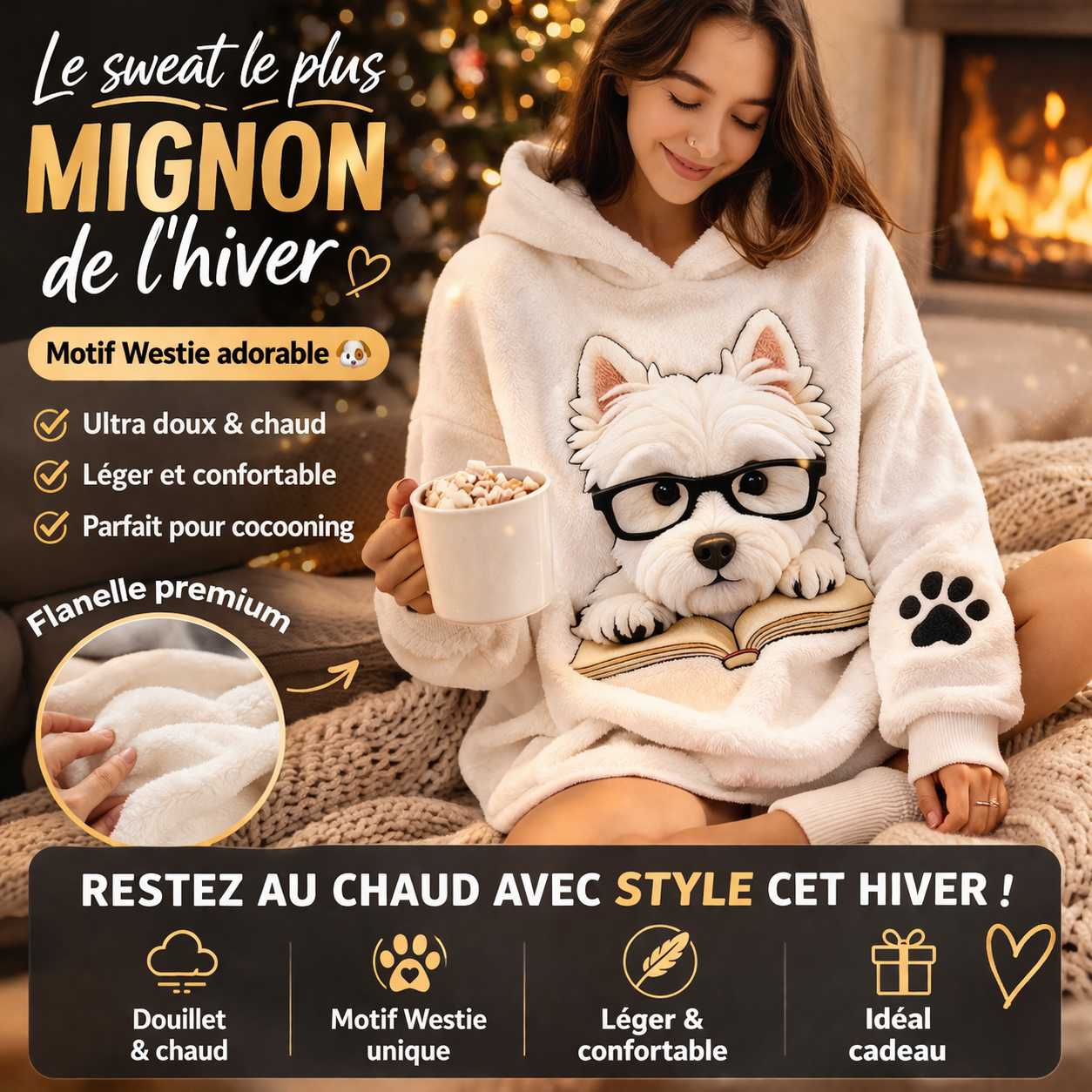 Si vous aimez les chiens et les vêtements confortables, ce sweat est fait pour vous. Son imprimé West Highland White Terrier apporte une touche joyeuse et attendrissante à votre tenue, tout en restant facile à porter au quotidien. C’est le genre de pièce qui attire les regards et déclenche les sourires.